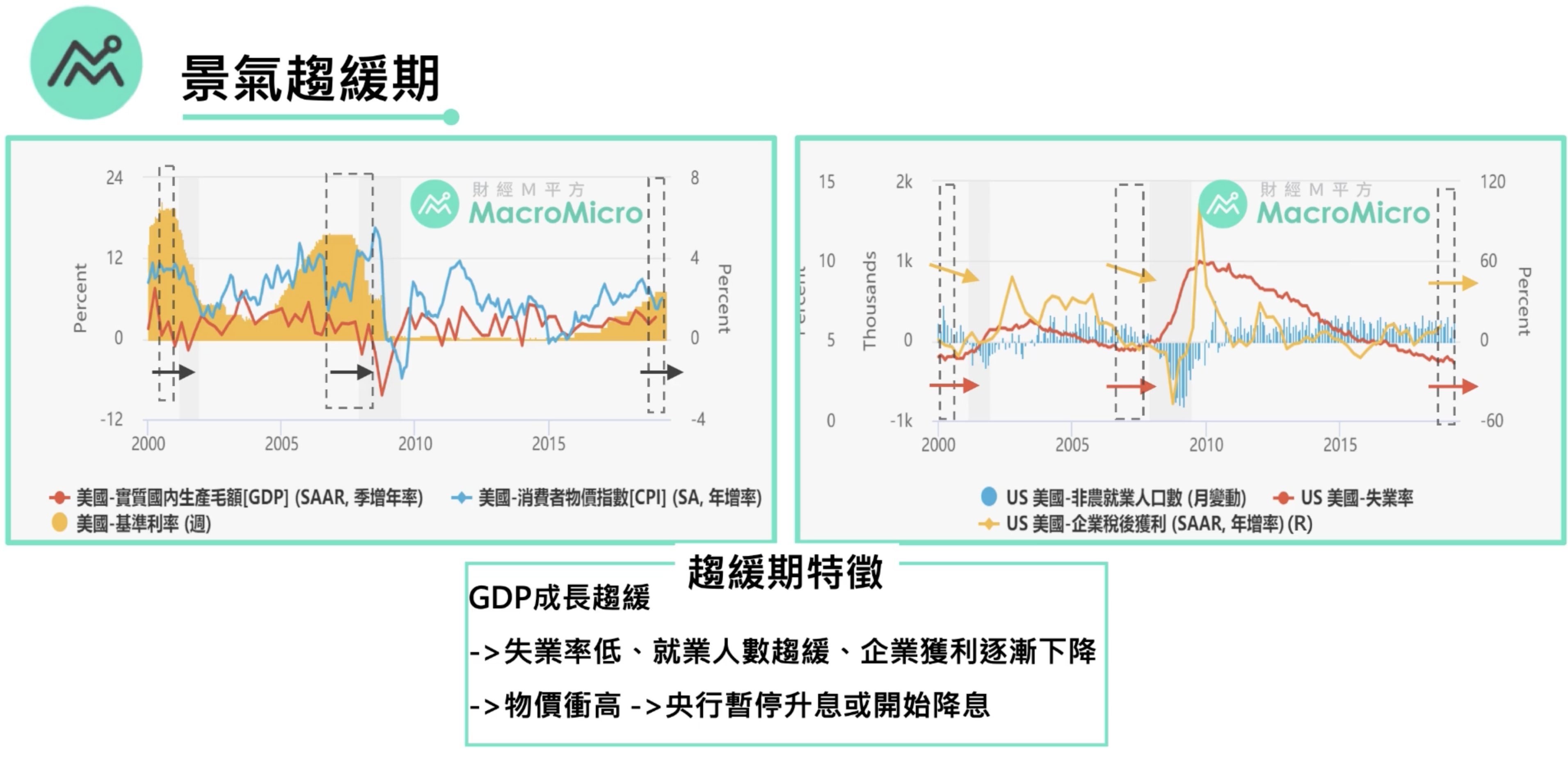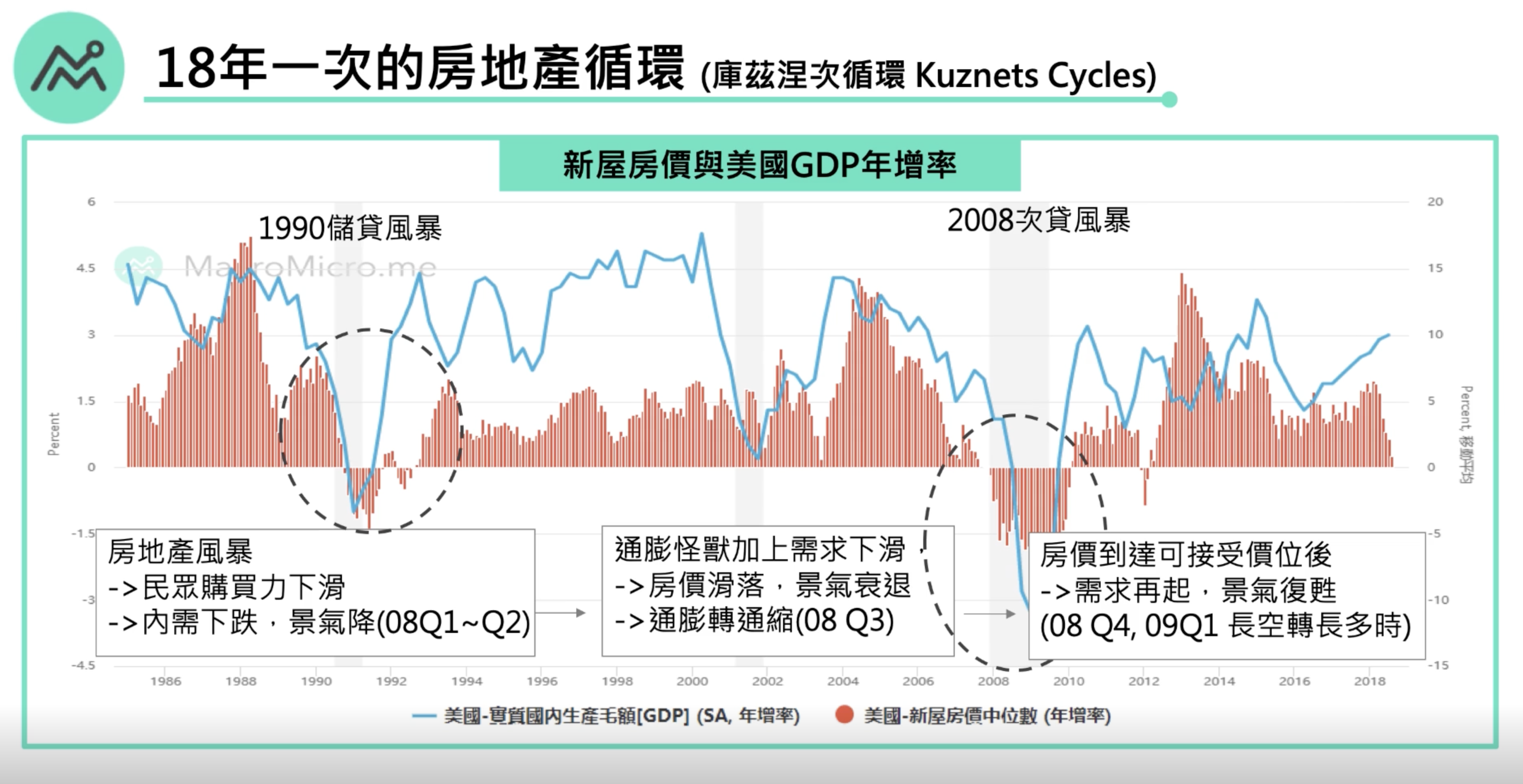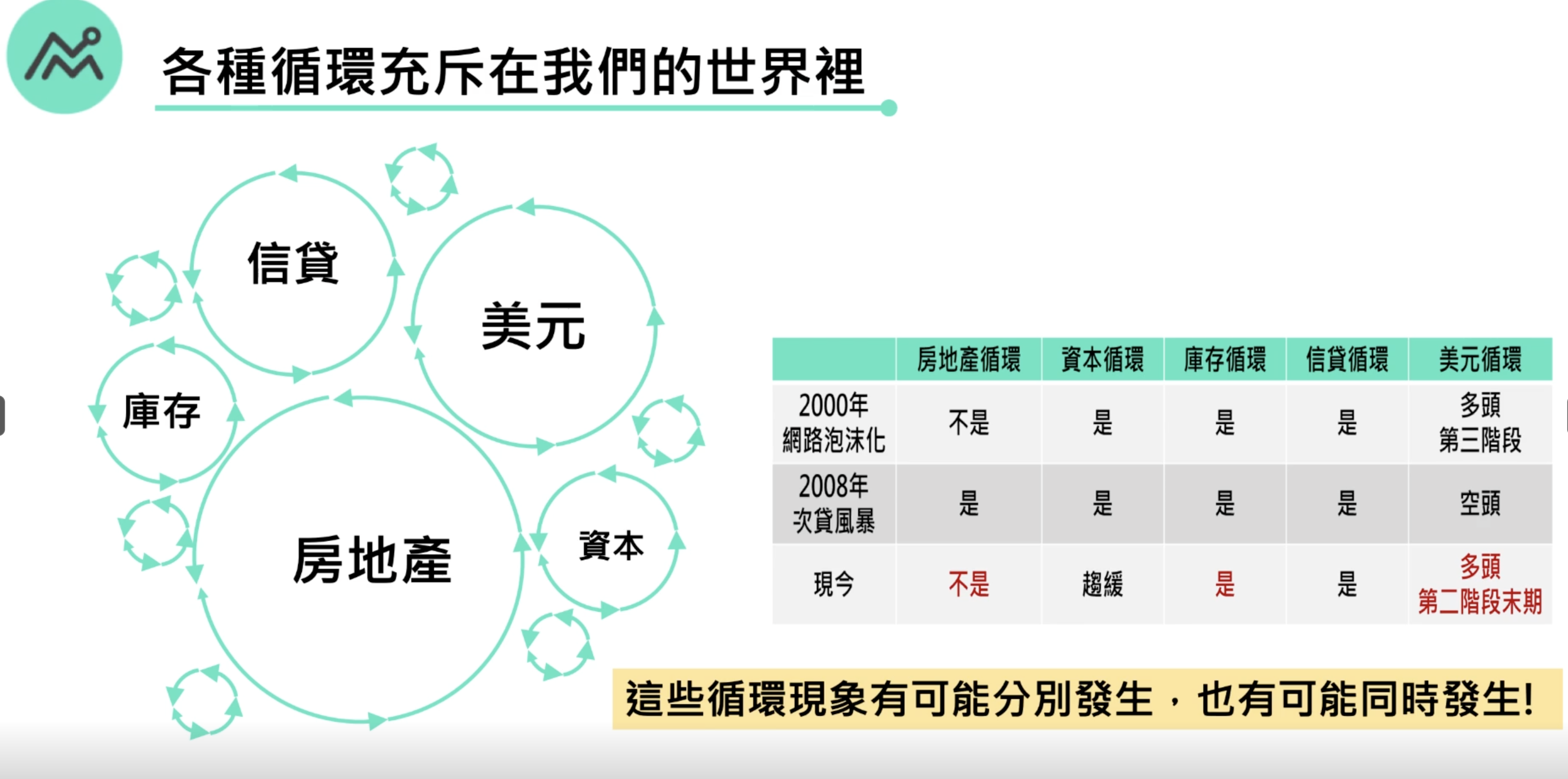 神奇的是不同的循環轉折點往往同時發生,如1990年和2008年