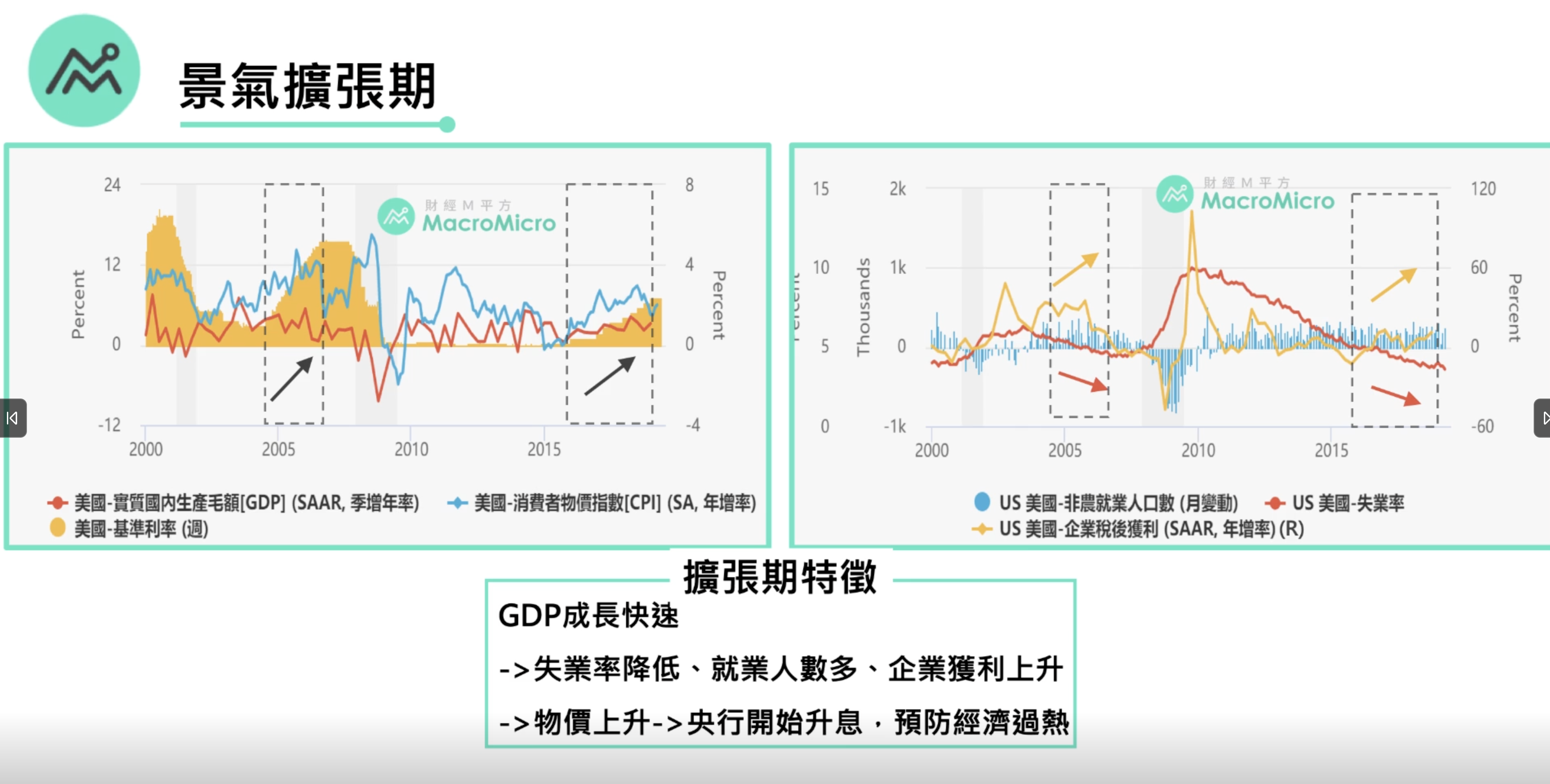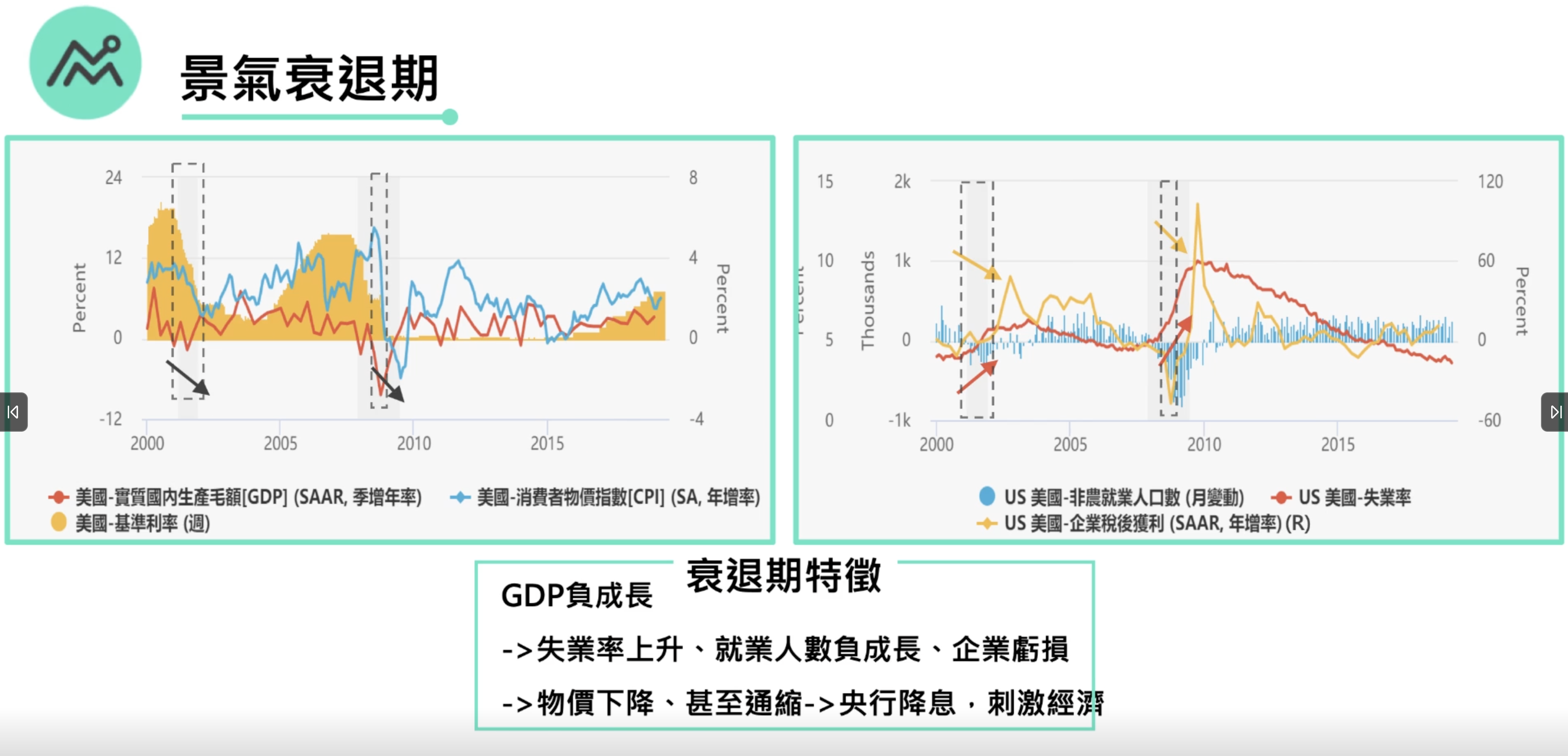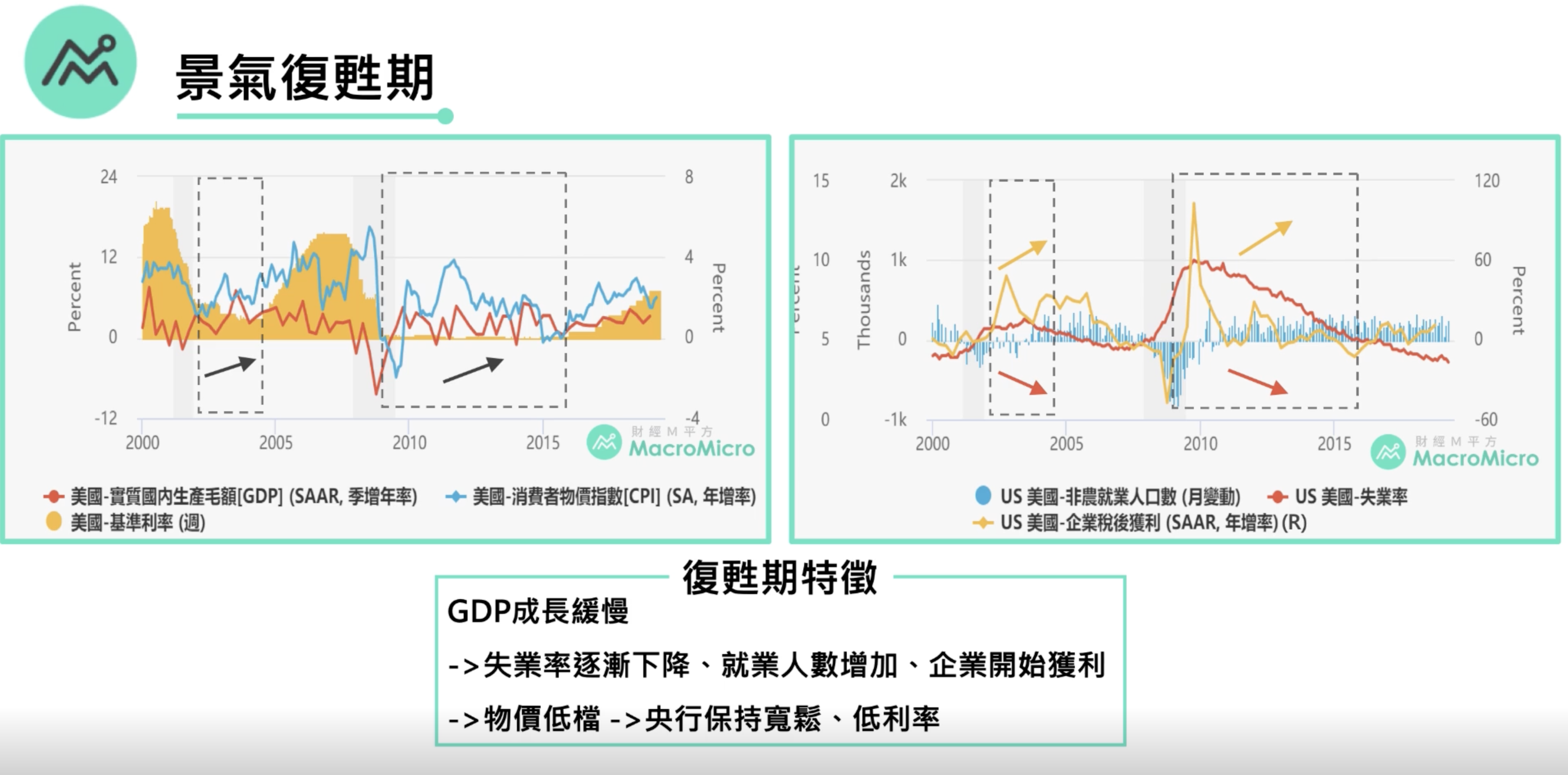 神奇的是不同的循環轉折點往往同時發生,如1990年和2008年