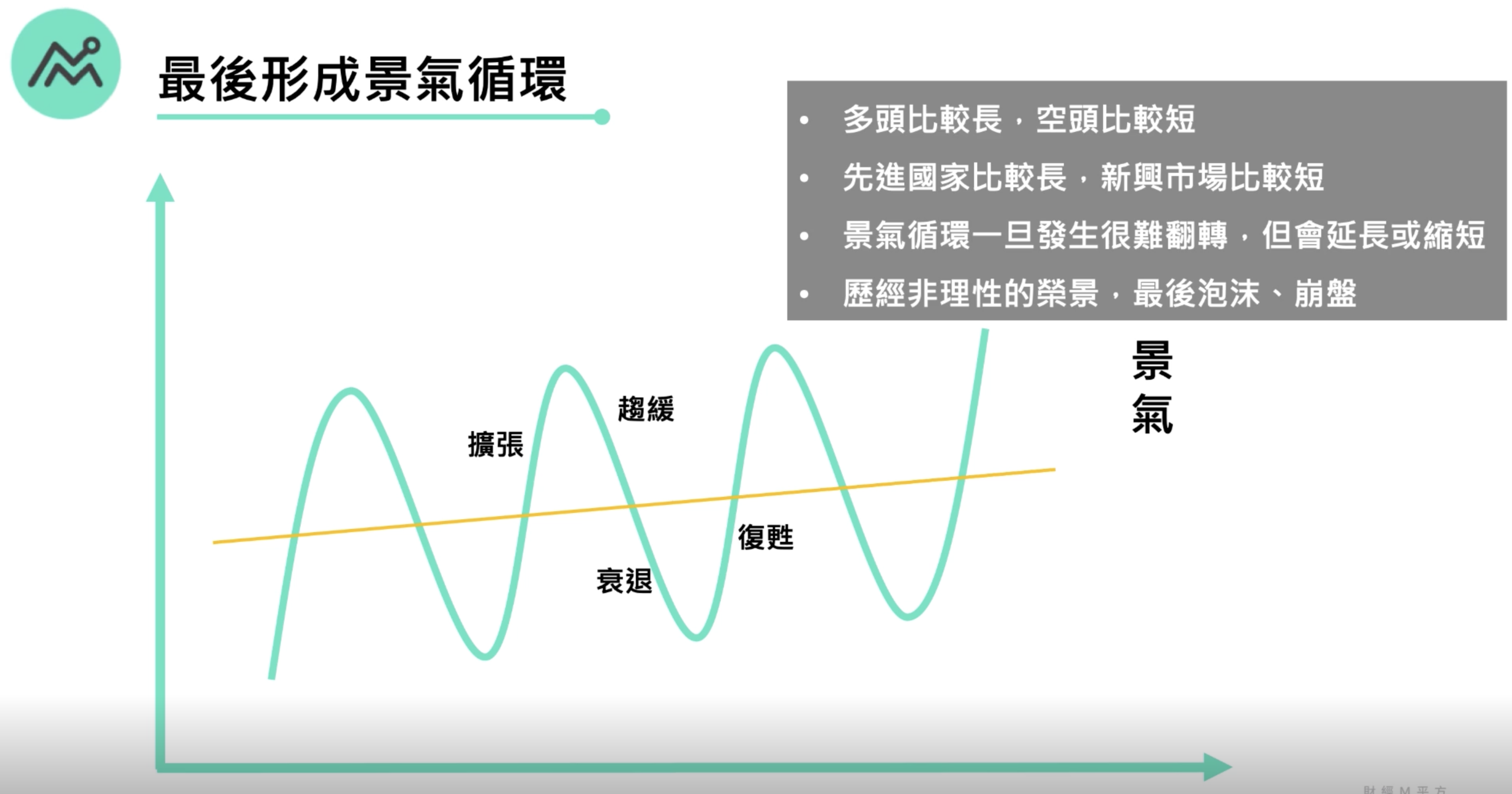 2.先進國家比較長,因為他們是內需市場。新興市場比較短是因為他們易受庫存所衝擊。
